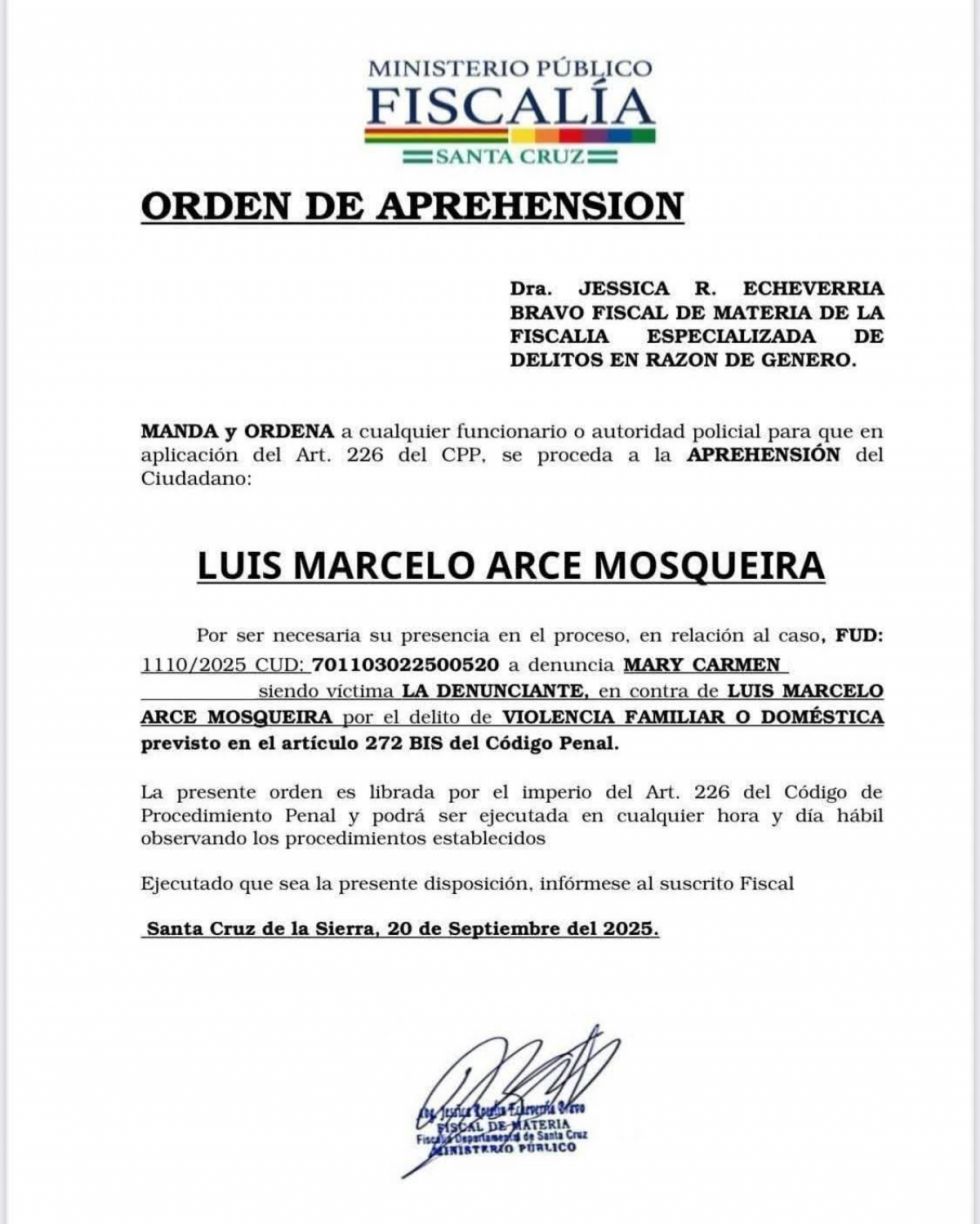 La Fuerza Especial de Lucha Contra la Violencia (FELCV) de Tarija confirmó este miércoles haber recibido la orden de aprehensión…