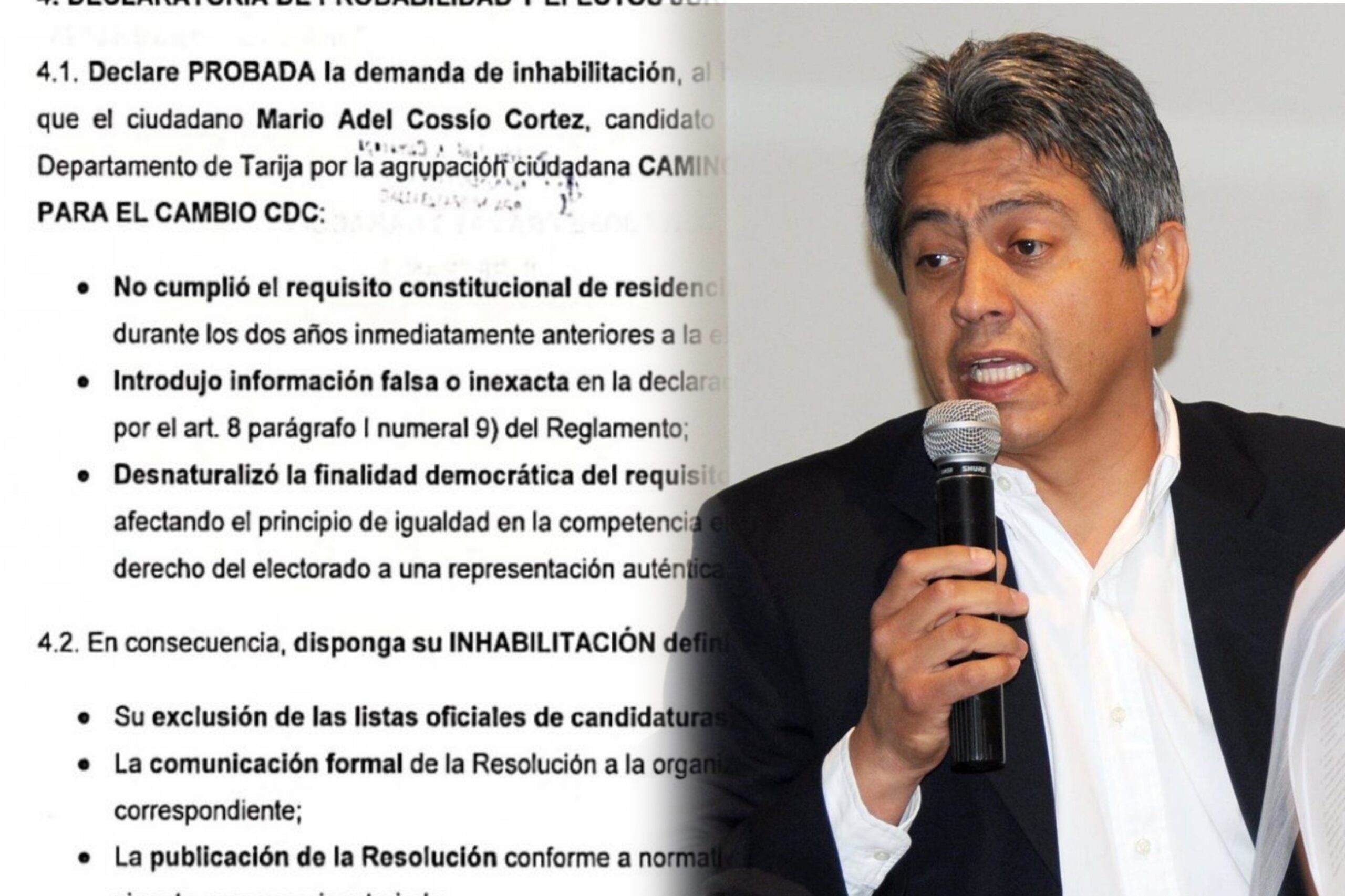 Demanda busca frenar la candidatura de Mario Cossío a la Gobernación de Tarija